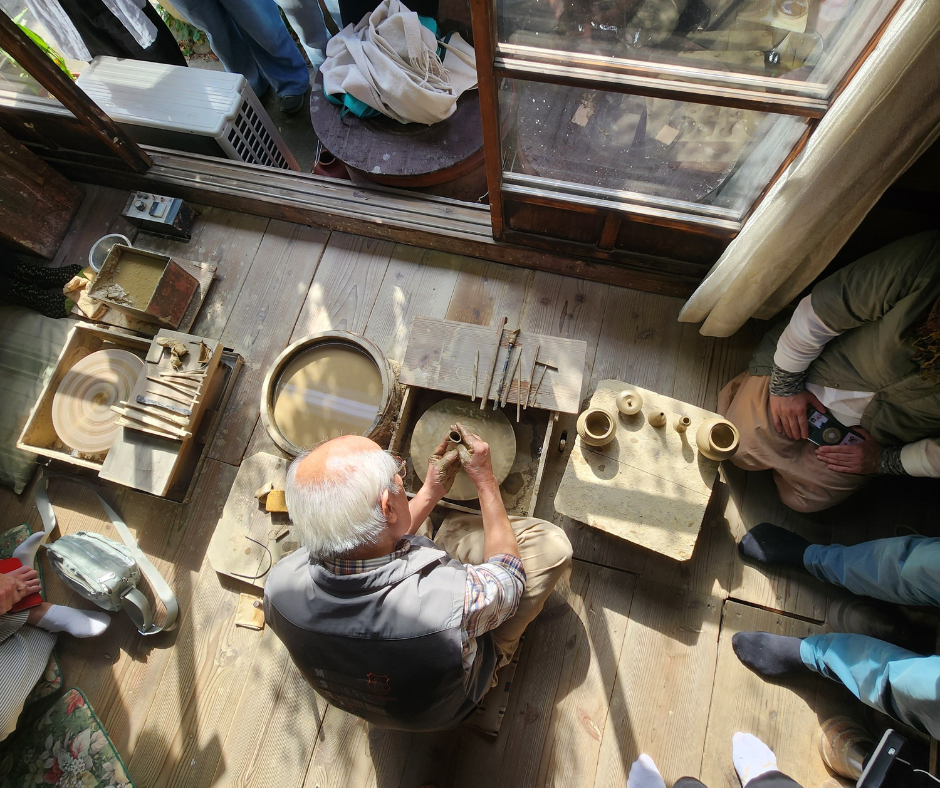 Je wordt hartelijk ontvangen, krijgt demonstraties te zien en enthousiast leggen deze pottenbakkers (grootmeesters) alles uit wat je wilt weten. (Nergens bordjes met ‘geen foto’s maken’ 🙂)