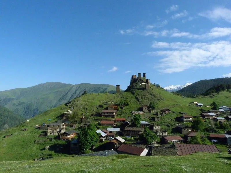 Dat is wat overdreven, het is vooral een hele mooie bergweg die u vanuit de vlakte door een weelderig begroeide kloof steeds hoger brengt, tot u bij de 2900 meter hoge Alano pas aankomt. Hier heeft u een prachtig zicht op de besneeuwde pieken van de Kaukasus. Deze pieken vormen de grens met beruchte, maar o zo mooie republieken als Dagestan en Tsjetsjenië. Na de afdaling van de pas rijdt u Tusheti in, een waanzinnig mooie bergregio. Groene alpenweiden, besneeuwde bergpieken en tussendoor de eeuwenoude dorpjes van Tusheti met hun karakteristieke stenen huizen en imposante wachttorens.