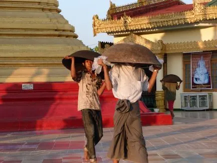 Een bezoek aan de Gouden Rots pagode is adembenemend bij zonsondergang. Het is een flinke klim naar boven, maar met het uitzicht als beloning is dat het dubbel en dwars waard.
