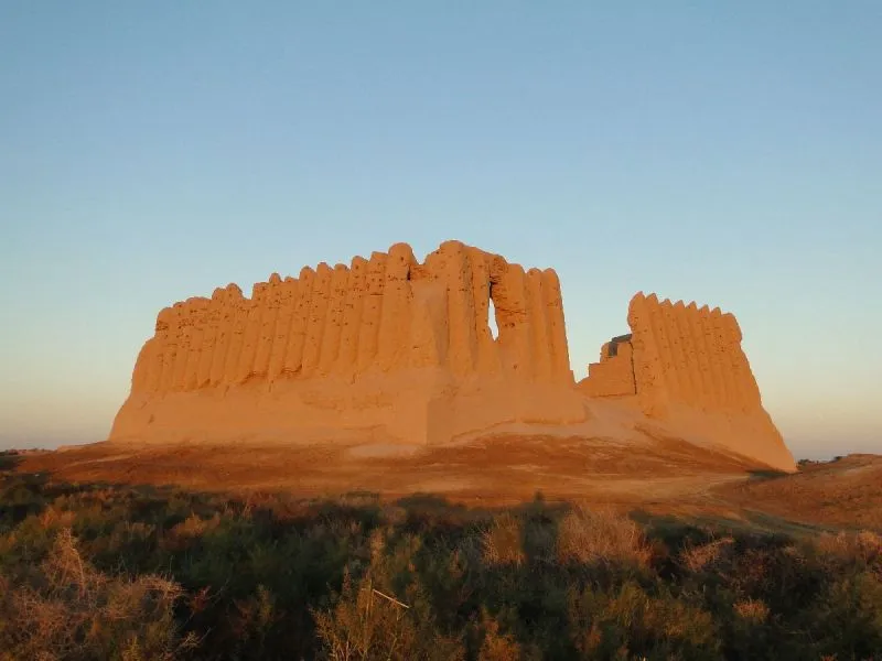 De legendarische steden van Merw behoorden in de hoogtijdagen van de zijderoute tot de belangrijkste en grootste ter wereld. Tegenwoordig resteren nog met name de imponerende stadsmuren. Een van de meest karakteristieke gebouwen is het Kyz Kala paleis, gebruikt van de 7e tot de 11e eeuw. Rondom het paleis grazen meestal dromedarissen. De stad werd gebouwd in de 6e eeuw voor Christus als onderdeel van het Aechemenidische rijk. Dat rijk werd verslagen in de 3e eeuw voor Christus door Alexander de Grote, hoewel het niet zeker is of hij zelf in Merw is geweest. Vervolgens werd de stad een van de belangrijkste centra in het rijk der Seleuciden, de Bactriërs, de Parthen en de Sassanieden. In de 11e eeuw leefde de stad op als oostelijke hoofdstad van het rijk der Seldjoeken en groeide zelfs uit tot een van de belangrijkste steden van de islamitische wereld. Maar uiteindelijk ging ook deze stad ten onder aan de destructieve kracht van Djenghiz Khan en zijn Mongoolse troepen. Sindsdien is de stad overgeleverd aan het woestijnzand. Het zal niet verbazen dat een stad met zo’n rijk verleden feitelijk bestaat uit vele steden, elk herinnerend aan een ander tijdperk. En een groot deel van het verleden ligt nog begraven onder de grond. Maar ook nu voelt u de historie zinderen door de woestijnhitte.