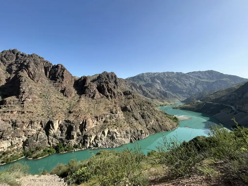 Na Uzgen rijdt u langzaam de bergen in. Stedelijke nederzettingen blijven achter u, en na het oversteken van een pas verschijnt het blauwe water van het Toktogulmeer in de verte, schitterend tussen de bergen. Onderweg volgt de weg de kronkelende Naryn rivier, die het landschap een extra dimensie van schoonheid en sereniteit geeft. Deze route biedt een perfecte combinatie van historische bezienswaardigheden en indrukwekkende natuurlijke landschappen.