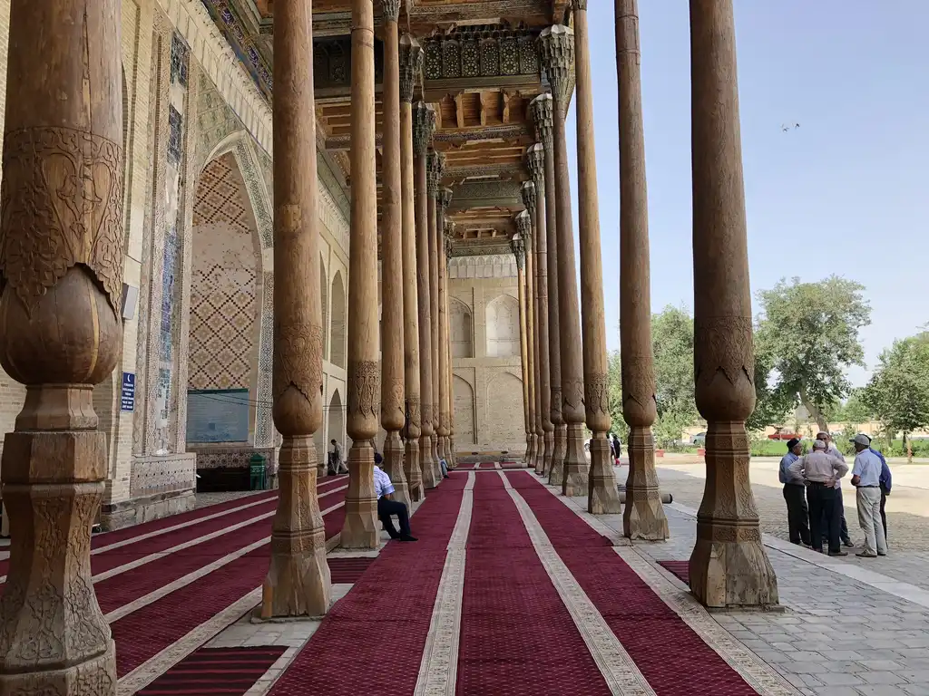 Het religieuze hart van Buchara vormt het Po-i Kalyan-ensemble. De Kalyanmoskee, gebouwd in 1514, is de op één na grootste moskee van Centraal-Azië, met een oppervlak van 127 bij 78 meter en plaats voor 12.000 gelovigen. Tegenover de moskee staat de Mir-i-Arab-madrasah, met twee opvallende turquoise koepels, en ertussen bevindt zich de 48 meter hoge Kalyan-minaret. Niet ver daarvandaan liggen de Ulugh Bek-madrasah en Abdul Aziz-madrasah met prachtige mozaïeken.