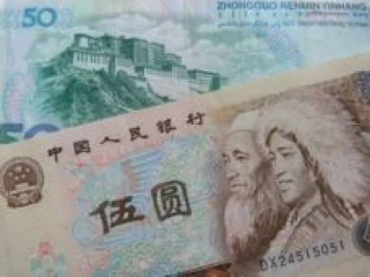 In China en Tibet wordt de lokale munteenheid de yuan (kuai) onderverdeeld in 10 jiao (mao). 1 euro is ongeveer 7,84 yuan (augustus 2024).