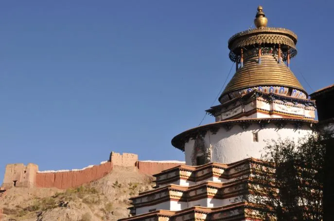 Het op 3950 meter gelegen Gyantse heeft van alle steden in Centraal-Tibet het beste haar Tibetaanse karakter behouden. Op historisch en cultureel gebied is Gyantse een belangrijke plaats, want u kunt er de enige overgebleven Newari Chorten (stoepa) in Tibet bezoeken. De Pango Chorten of Kumbum is gebouwd in 1427 en een fraai voorbeeld van vijftiende eeuwse Newari-kunst. De Newari’s van de Kathmandu Vallei in Nepal waren vroeger veel gevraagde kunstenaars in onder meer Tibet en Bhutan.