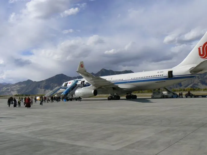 U vliegt vandaag naar Gongkar, de luchthaven van Tibet. Een prachtige tocht bij helder weer met spectaculair zicht op de pieken van de Himalaya.