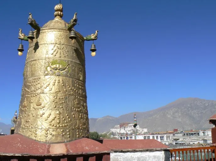 Het oude centrum van Lhasa wordt gedomineerd door het Potala paleis, de eeuwenoude verblijfsplaats van de Dalai Lama’s en nog steeds een van de meest imponerende bouwwerken ter wereld.