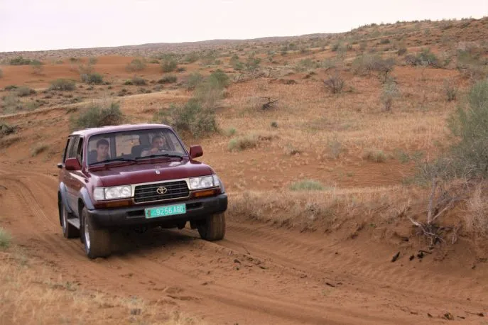 Vandaag reist u de gehele dag “off-road” en trekt u dwars door de Karakum Woestijn. De route gaat over de harde kleibodem van