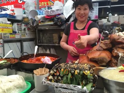 Ontdek samen met uw gids het dampige, kleurrijke, smaakvolle en intense geharrewar van een levendige streetfood-markt in hartje Seoul. Ga voor de verse bibimbap, pittige Kimchi, gebakken pajeon dat lijkt op een gewone omelet (beware!) of een Koreaanse sushi genaamd gimbap. Zitten op een houten bankje naast een Koreaans gezin, al kletsend met de mevrouw achter de toonbank die met enorme rubberen roze handschoenen uw snack aanreikt. Als u geluk heeft met een stralende glimlach en een veelbetekenende knipoog.