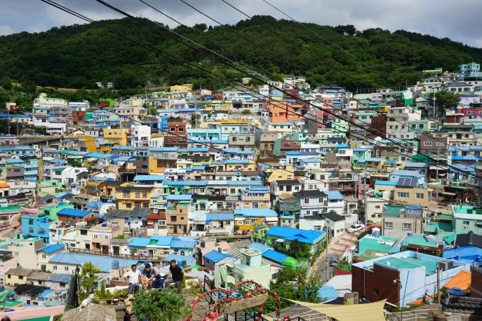 Langs de weg is een kleine fototentoonstelling van oude foto's van de wijk, genomen in de jaren '50. Busan heeft een mooie skyline langs de boulevard met stylish restaurants en een gezellig strand: Haeundae beach. Vooral 's avonds leeft de boel op met veel eettentjes op straat en goede restaurants met uitzicht op de stad in lichtjes.
